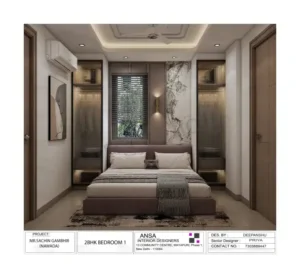 • Interior Work Finishes: All Rooms: Have Asian Royal washable Paint, All Rooms: Heavy False Ceiling with LED and COB Light Fittings (including drawing room), All Rooms: LED Panel up to full height, All Rooms: One Wallpaper/Wall Panelling work with PU polish/deco polish, All Rooms: Wardrobes (Almirah), All Wooden Work: Waterproof with commercial board usage, Other Rooms: POP (Plaster of Paris) finish, Top-Grade Interior Work Designed by ANSA (Market Top Leading Interior Company), All channel work Done by 'Home Deco' ; Sanmica on both sides of doors