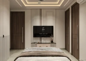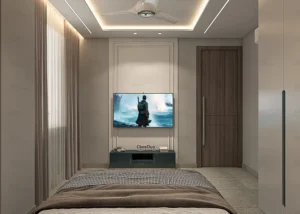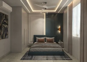 • Interior Work Finishes: All Rooms: Have Asian Royal washable Paint, All Rooms: Heavy False Ceiling with LED and COB Light Fittings (including drawing room), All Rooms: LED Panel up to full height, All Rooms: One Wallpaper/Wall Panelling work with PU polish/deco polish, All Rooms: Wardrobes (Almirah), All Wooden Work: Waterproof with commercial board usage, Other Rooms: POP (Plaster of Paris) finish, Top-Grade Interior Work Designed by ANSA (Market Top Leading Interior Company), All channel work Done by 'Home Deco' ; Sanmica on both sides of doors