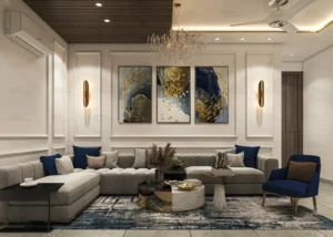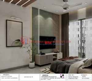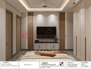 - Interior Work Finishes: All Rooms: Have Asian Royal washable Paint, All Rooms: Heavy False Ceiling with LED and COB Light Fittings (including drawing room), All Rooms: LED Panel up to full height, All Rooms: One Wallpaper/Wall Panelling work with PU polish/deco polish, All Rooms: Wardrobes (Almirah), All Wooden Work: Waterproof with commercial board usage, Other Rooms: POP (Plaster of Paris) finish, Top-Grade Interior Work Designed by ANSA (Market Top Leading Interior Company), All channel work Done by 'Home Deco' ; Sanmica on both sides of doors