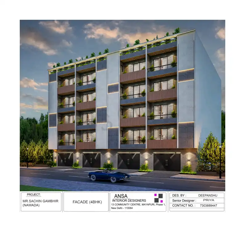 - Exterior material: Exterior Paint: Nerolac Suraksha/Asian Paint Ace, Front Elevation: Tiles work fitted with MYK LATICRETE Chemical, Front Side: Tile and ACP Sheet Work, Steel Railing on front side in Each Flat unit
