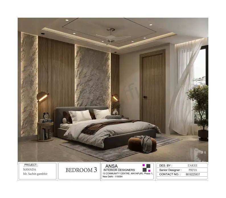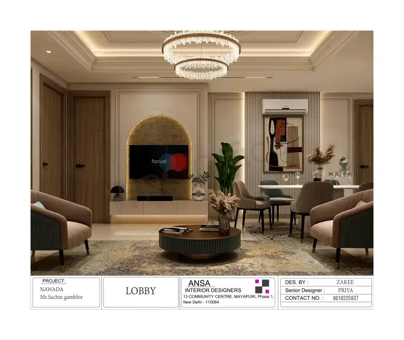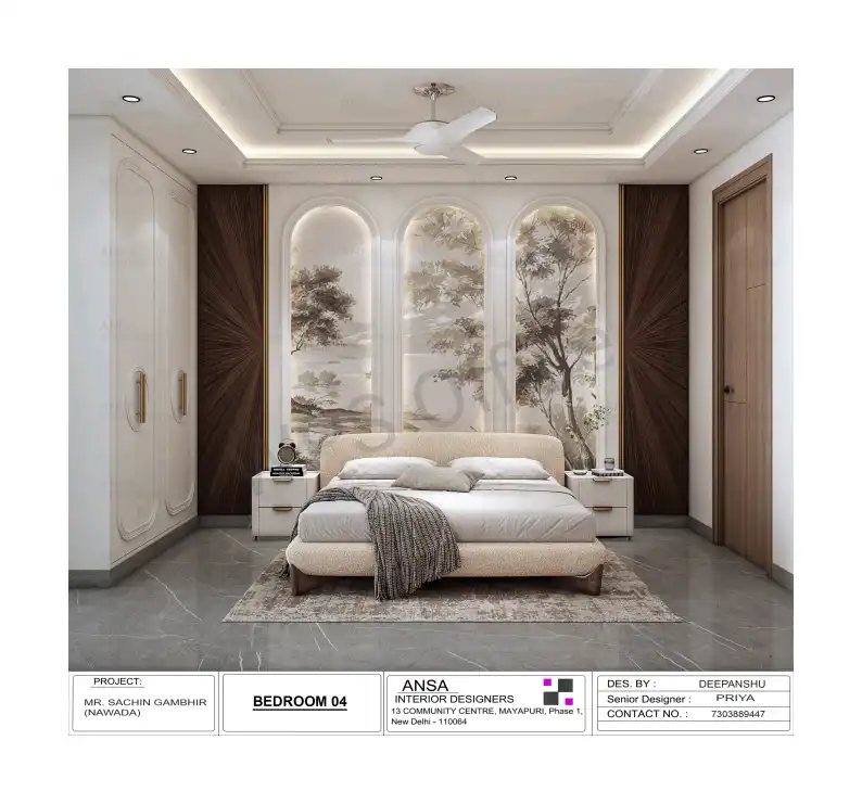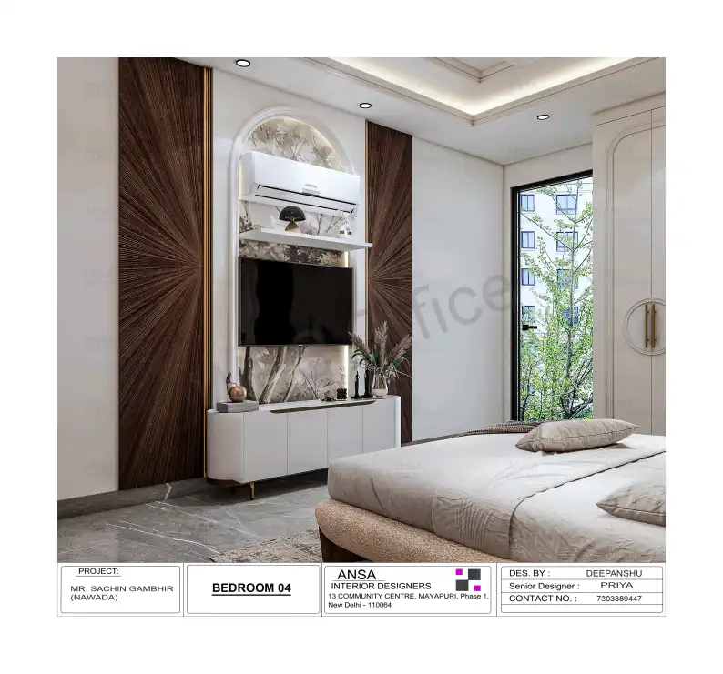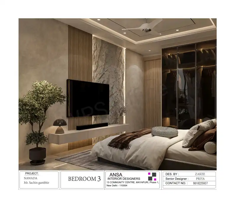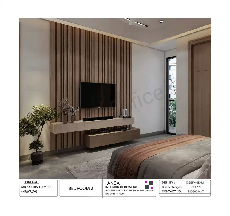 - Interior Work Finishes: All Rooms: Have Asian Royal washable Paint, All Rooms: Heavy False Ceiling with LED and COB Light Fittings (including drawing room), All Rooms: LED Panel up to full height, All Rooms: One Wallpaper/Wall Panelling work with PU polish/deco polish, All Rooms: Wardrobes (Almirah), All Wooden Work: Waterproof with commercial board usage, Other Rooms: POP (Plaster of Paris) finish, Top-Grade Interior Work Designed by ANSA (Market Top Leading Interior Company), All channel work Done by 'Home Deco' ; Sanmica on both sides of doors
