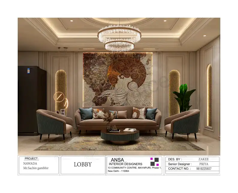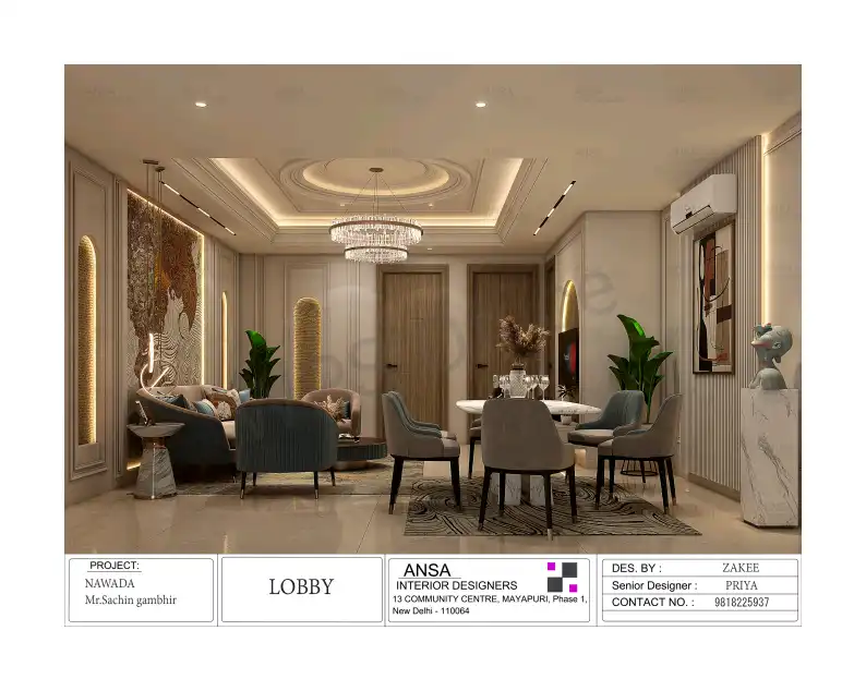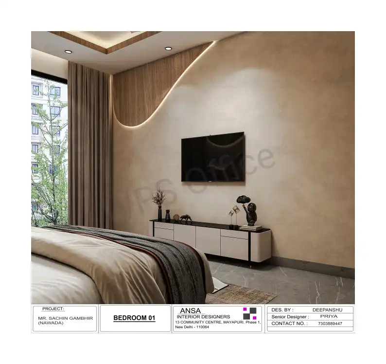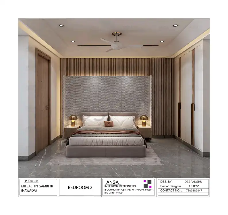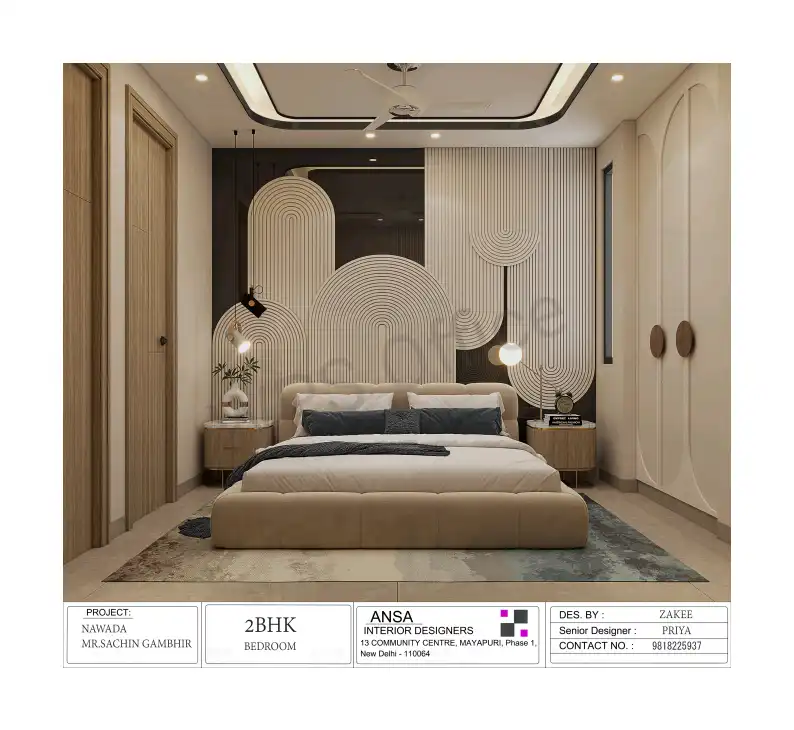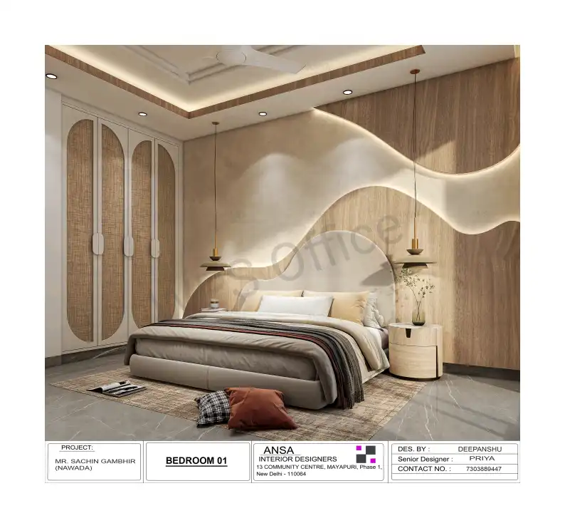 - Interior Work Finishes: All Rooms: Have Asian Royal washable Paint, All Rooms: Heavy False Ceiling with LED and COB Light Fittings (including drawing room), All Rooms: LED Panel up to full height, All Rooms: One Wallpaper/Wall Panelling work with PU polish/deco polish, All Rooms: Wardrobes (Almirah), All Wooden Work: Waterproof with commercial board usage, Other Rooms: POP (Plaster of Paris) finish, Top-Grade Interior Work Designed by ANSA (Market Top Leading Interior Company), All channel work Done by 'Home Deco' ; Sanmica on both sides of doors
