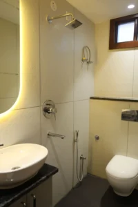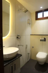 - Bathrooms & Washroom: Both Washrooms: All Sanitary Fittings by Branded Companies (Jaquar, Kohler, Varna, Prince, etc.), Bathroom Glazed Tiles: Up to full height
