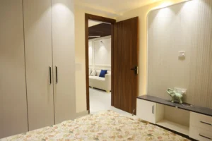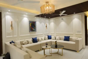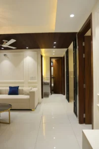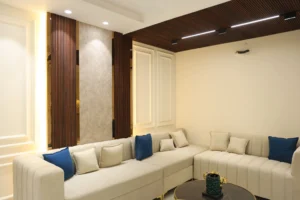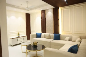 - Interior Work Finishes: All Rooms: Have Asian Royal washable Paint, All Rooms: Heavy False Ceiling with LED and COB Light Fittings (including drawing room), All Rooms: LED Panel up to full height, All Rooms: One Wallpaper/Wall Panelling work with PU polish/deco polish, All Rooms: Wardrobes (Almirah), All Wooden Work: Waterproof with commercial board usage, Other Rooms: POP (Plaster of Paris) finish, Top-Grade Interior Work Designed by ANSA (Market Top Leading Interior Company), All channel work Done by 'Home Deco' ; Sanmica on both sides of doors